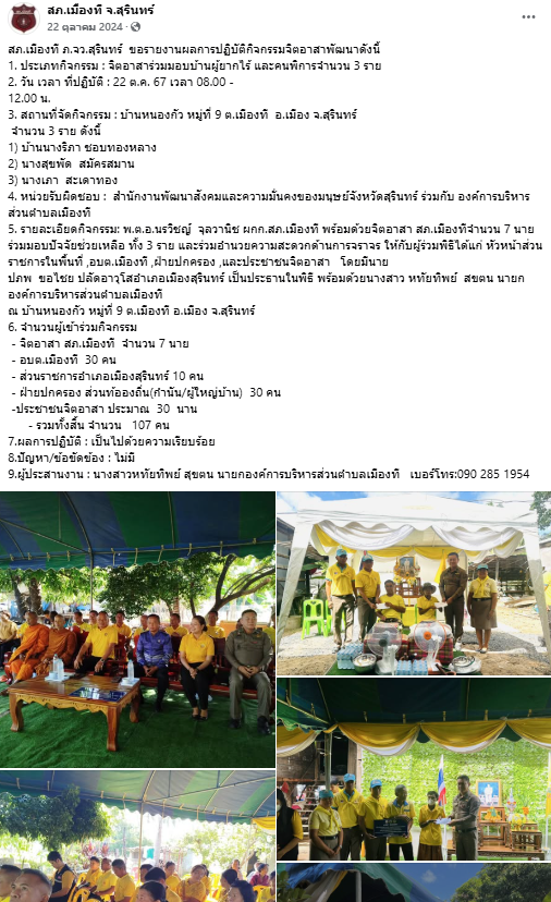 วันที่ 28 ตุลาคม 2567 เวลา 10.00 น. พ.ต.อ.นรวิชญ์ จุลวานิช ผกก.สภ.เมืองที นำข้าราชการตำรวจสถานีตำรวจ